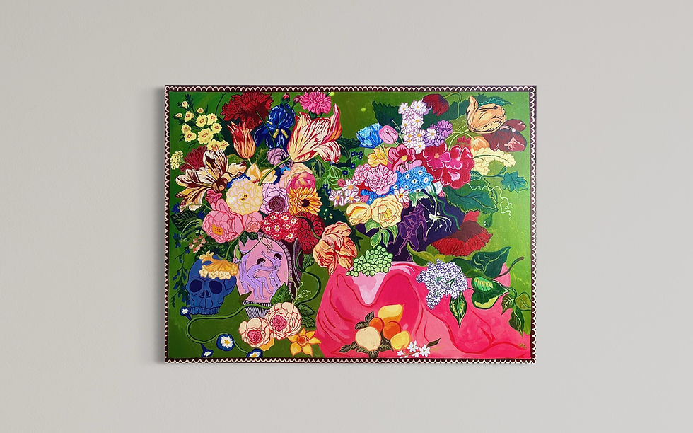 Emily Malone is a UK based painter celebrated for her joyful approach to classical paintings and themes. Her paintings are a rebellious reinterpretation of romantic and erotic subjects from European Art History, creating dynamic conversation within her work about where classical painting meets contemporary. She draws from a deep appreciation for classical art: the elegance, intricacy, mythology, symbolism and themes; and subtly weaves elements of her personal life, thoughts and feelings into her work, branding it ‘pop-renaissance’.